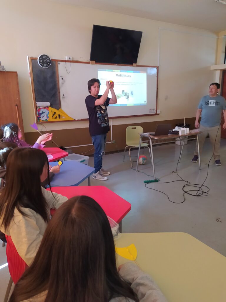 Uno de los talleres destacados fue “Internet de las Cosas y Energías Renovables”, orientado a estudiantes de 7mo y 8vo básico. Este taller, impartido por el equipo Kimeltuwe loftech, introdujo a las/os participantes en el uso de sensores para medir variables físicas y transmitir datos mediante el Internet de las Cosas (IoT), incorporando además conceptos de energías renovables.