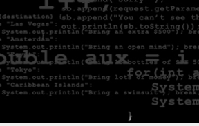 $array [0] = '"Nada es tan fácil como parece".'; $array [1] = '"Todo lleva más tiempo del que usted piensa".'; $array [2] = '"Todo lo que puede ir mal, irá mal".'; $array [3] = '"Si hay un peor momento para que algo salga mal, ocurrirá en ese entonces."'; $array [4] = '"De izquierda a sí mismas, las cosas tienden a ir de mal en peor."'; $array [5] = '"Si todo parece ir bien, obviamente has pasado por alto algo."'; $array [6] = '"La naturaleza siempre tiene lados con fallas escondidas."'; $array [7] = '"La madre naturaleza es una perra."'; $array [8] = '"Es imposible hacer algo a prueba de fallos, porque los tontos son muy ingeniosos."'; $array [9] = '"Cada vez que se propuso hacer algo, otra cosa deberá hacerse en primer lugar."'; $array [10] = '"Cada solución genera nuevos problemas."'; $array [11] = '"Dos errores son sólo el principio."'; $array [12] = '"Al no tener éxito en un principio, destruya todas las pruebas de tal intento."'; $array [13] = '"El éxito siempre ocurre en privado y el fracaso a la vista."'; $array [14] = '"En cualquier momento que necesite un archivo crucial almacenado en disco, el computador se caerá."'; $array [15] = '"Un patch es un pedazo de software que reemplaza bugs antiguos por nuevos."'; $array [16] = '"Los bugs no son opciones del software, están incluidos gratis."'; $array [17] = '"Los únicos programas que corren de manera perfecta cada vez son los virus."'; $array [18] = '"Los virus desaparecen del disco duro cada vez que el computador se cae, lo que hace irrelevante que un programa anti-virus los elimine."'; $array [19] = '"Un programa debugeado se caerá y borrará archivos fuente en los dispositivos de almacenamiento justo cuando no se hayan hecho respaldos."'; $num = rand(0,19); $dice = 'Murphy:'; echo $dice.' '.$array[$num].''; ?> |